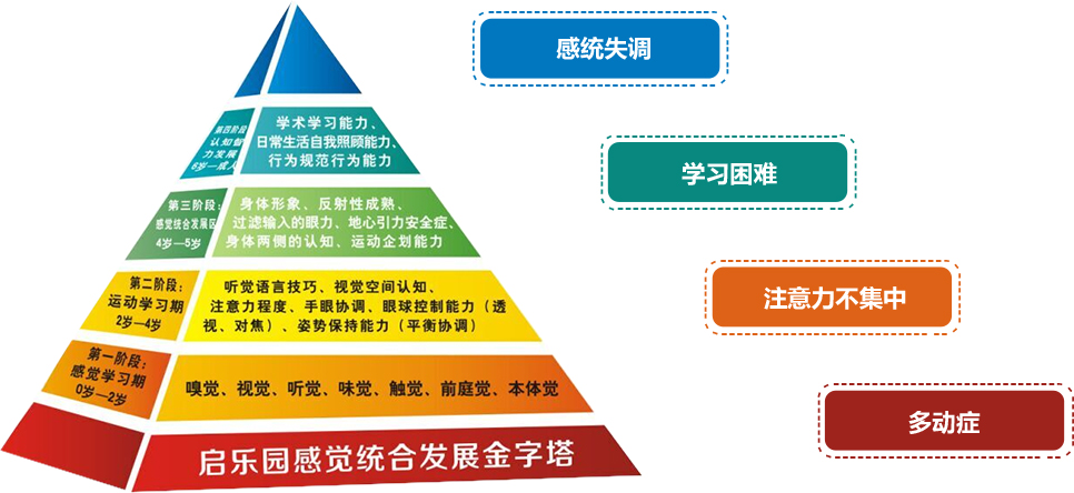 經過多年的課程實踐和理論研究,啟樂園感統訓練專家得出如下結論:小家庭和都市化生活,大人對幼兒過度保護要求太多,加上劇烈競爭的教育方式親子關系僵化和緊張而引起的感覺統合不足,由于感覺統合不足引發的學習、生活、活動障礙的問題愈來愈多。